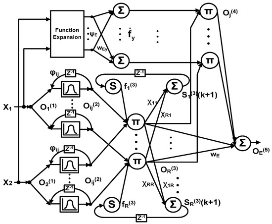 With the dynamics being continually identified by a model, the recurrent fuzzy neural networks (RFNN) are suitable for multivariable applications, especially for a system with unclear and complex dynamics [13,14]. This paper used the functional-link neural network (FLNN) to strengthen the performance of the novel RFNN (NRFNN). The input variables are trigonometric basis functions and the linearly independency is used for a functional expansion of the FLNN in the extended space for classification. Moreover, FLNN can capture nonlinear input–output relationships effectively by the suitable set of polynomial inputs, since the high-order effects are incorporated in the input variables into higher dimensions of the input space [15,16,17].