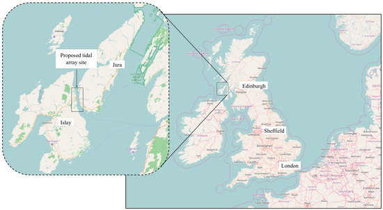 In order to ensure replication of a suitable real case, this study used the proposed ScottishPower Renewables Sound of Islay site as its basis. The location of the site is shown in Figure 3.