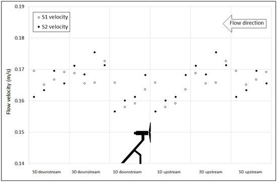 Consequently, it appears that upstream and downstream velocity is unaffected by the differences in support structure between the S1 and S2 designs.