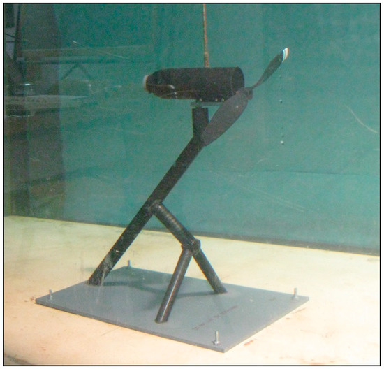 A single turbine unit was used for all experiments, in order to ensure that the only change between cases was the support structure. The turbine blades were driven rather than allowing the turbine to rotate in the flow of water. This method has been employed in previous successful turbine model tests by others [23,27], and avoids problems associated with frictional losses in such small scale systems, which in a non-driven case can be greater than turbine-generated power.