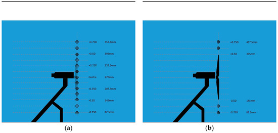 ADV measurement locations during blade plane tests with blades (a); ADV measurement locations during blade plane tests with blades (b).