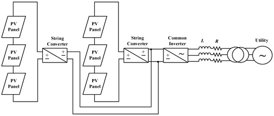 Solar energy is a renewable power source being widely exploited all around the world. PV technology involves converting solar energy directly into electrical power by means of solar cells, which are usually manufactured and combined into modules. For PV system, several useful topologies have been studied and applied [26]. Figure 4 shows a typical configuration of PV system where several strings are interfaced with their own DC-DC converter for voltage boosting and then connected to a common DC bus. After that, a common DC-AC inverter is used for grid interfacing. Usually the MPPT is implemented on the DC-DC converter, while the grid synchronization and power regulation are achieved by the grid-side inverter.