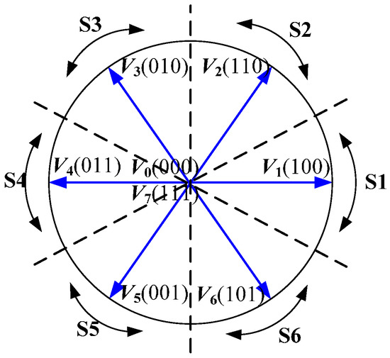Since the MPPT techniques are mature and well developed, in this paper we concentrate on the control of the grid-side common inverter of the PV system (see Figure 4). Although many control schemes have been developed for grid-connected inverters, MPC is seldom mentioned in this application. Actually grid-connected PV systems should be controlled to regulate active and reactive powers flexibly for voltage support and power quality improvement [27]. In this sense, flexible power regulation capability for a DG unit becomes more and more significant. Here, a MPC strategy of grid-connected inverters for PV system is developed and implemented. For two-level inverters, there are eight possible voltage vectors generated by the inverter (six active vectors and two null vectors), and the α-β plane is divided into six sectors, as shown in Figure 5.