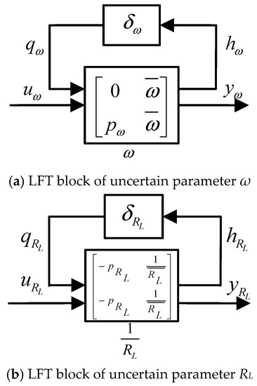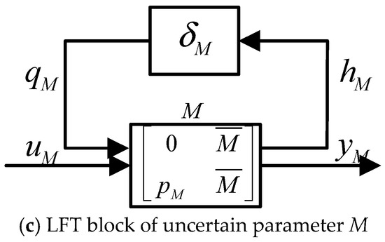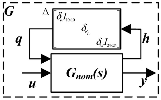 Substituting the LFT blocks of uncertain parameters in Figure 5 into the system GSSA model, the GSSA model with uncertain parameters can be obtained. Then the LFT method can be utilized to detach the uncertain parameters from the nominal GSSA model. One state equation is selected as an example to illustrate the process. The state equation of iS is a relative cross-coupling equation due to including the product of multiple uncertain parameters. It can be shown as: