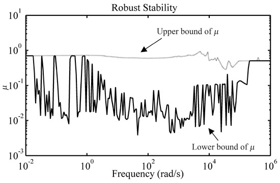 Figure 11 shows that in the frequency interval [10−2 106] (rad/s), the peak value of μ is 0.936 which indicates < 1 is satisfied. It shows that the system stability can be maintained for all Δ satisfying ||Δ||∞ < 1/0.936. Hence, when the multiple uncertain parameters vary in the range given in Table 1, the robust stability can be guaranteed.
