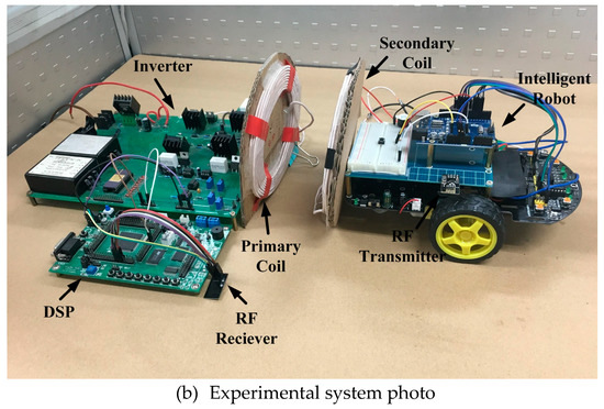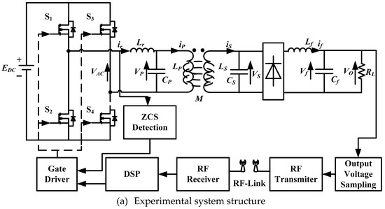 In the experimental system, an IRF 540 MOSFET was used for the switching components S1–S4. The primary and secondary coils (LP and LS) were made by Litz wire with 24 turns and 15 cm diameter. RF-link was built up by nRF2401 RF module working at 2.4 GHz to realize information exchange.