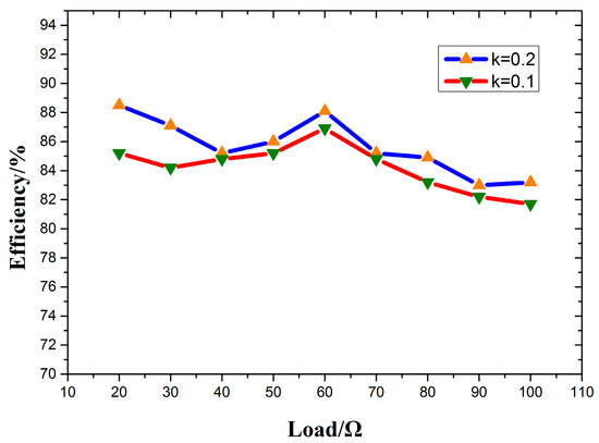 System efficiency variation with load and coupling coefficient variation.