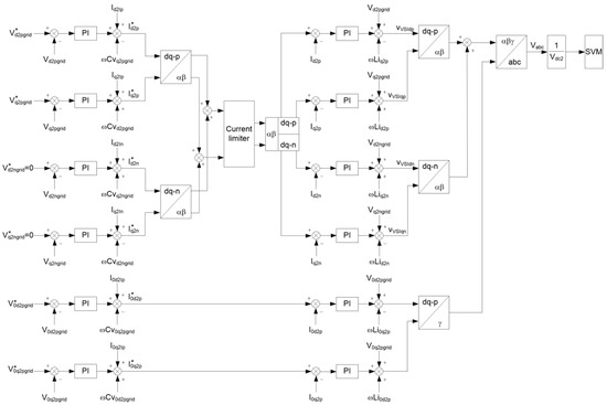 - The negative-sequence grid voltage is fed-forwarded to the switching strategy that has to be generated at the converter terminals; therefore, no negative sequence voltage is seen by the inductive filter and only positive-sequence currents flow between the grid and the converter, even in presence of asymmetrical grid disturbances; see Figure 2.