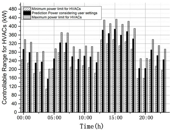 The electricity price adopts the peak valley electricity price as Shanghai, the electricity price is ¥0.68 per kWh from 9:00 to 22:00, and electricity price is ¥0.33 per kWh for the rest of the time. is set to ¥0.167 per kWh [25]. The controllable range for HVACs in the demonstration are shown in Figure 3.