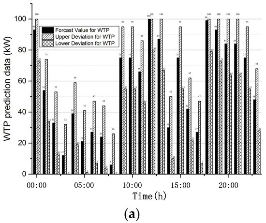 Forecast Value Deviation for Intermittent Energies: (a) Power Deviation for WTP1 and WTP2; (b) Power Deviation for PV2&4; (c) Power Deviation for PV1&3.