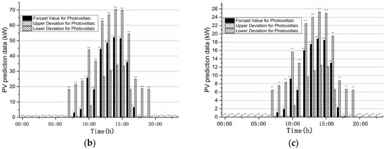 The upper and lower deviations for intermittent energies are shown in Figure 4. It should be noticed that the deviation for photovoltaic during the night is 0, as it is obvious that the photovoltaic system cannot generate electricity during the night.