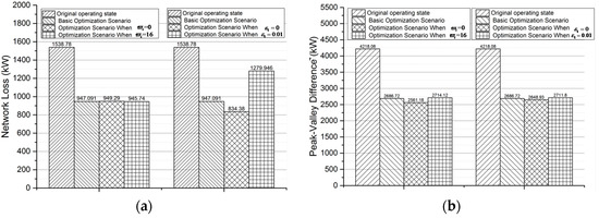 The summary of optimization results for the former scenarios is shown in Figure 18. The optimal operation strategy proposed in this paper realizes an efficient usage of all kinds of controllable resources. It can be seen from the figure that both network losses and the peak-valley differences are improved in all scenarios compared to the original operation state.
