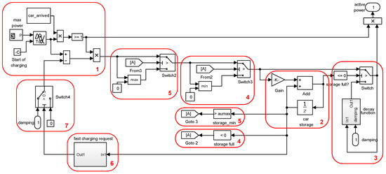 Research related to the control of microgrids’ components, presented in [13,14], shows that the simulation-based approach is able to facilitate the evaluation of smart grid- and EV-related communication protocols, control algorithms for charging and the functionalities of local distribution grids as part of a complex, critical cyber-physical system. The resulting system can be applied to studying the balancing of local smart grids with EV batteries.