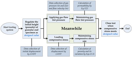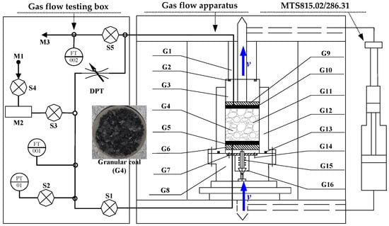 where is the pore pressure, is the vertical axis going through the center of the sample, is the gas kinetic viscosity, and is the permeability of the granular coal. The Darcy equation (Equation (4)) can be used to model the gas flow in the granular coal sample, which is further verified by the Reynolds number () [31]: