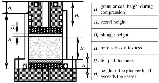 | height of granular coal during compression (L) | compressive stress (mL−1·T−2) | ||