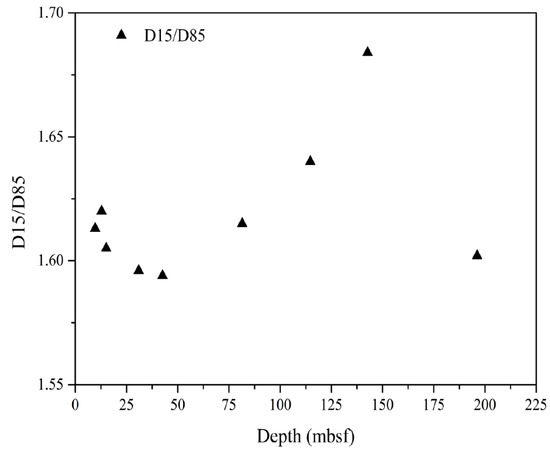 | Core Number | D50 (μm) | D3 (μm) | D10 (μm) | D25 (μm) | D75 (μm) | D90 (μm) | D97 (μm) | D15/D85 |