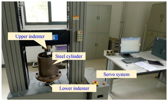 A solid backfill body is subjected to confined compression after the roof in the mined-out area becomes deformed. The degree of deformation of the solid backfill body varies with the stress imposed on it by the roof. The coal gangue used by the solid backfill coal mining face in the Jining No. 3 coal mine was adopted for testing purposes. The universal material testing system and specially-made compact steel cylinder shown in Figure 6 were used to test the coal gangue’s deformation behavior under confined compression [11].