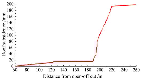 - Before a distance of 232.5 m, the roof only showed curve subsidence, with no obvious separations or cracks. The maximum subsidence of the roof was 0.43 m at a distance of 150 m.