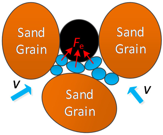 Capture-plugging occurs when a gas bubble or an oil droplet is stuck in a pore-throat with a smaller diameter than the gas bubble or oil droplet particle size (see Figure 16). Based upon the stress analysis, the main forces acting on the gas bubble or oil droplet include the driving force of the fluid (Fdf) and the supportive force of the pore-throat walls (Fsx) (see Figure 17). The supportive force Fs is related to the deformation of the gas bubble or oil droplet due to the viscoelasticity.