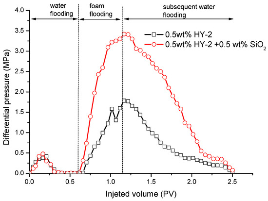 For the heavy oil reservoirs with oil viscosities lower than 10,000 mPa·s, water flooding can be conducted as a secondary oil recovery method. However, because of the poor mobility ratio between heavy oil and water, water flooding does not have a satisfactory performance [4,5]. Due to this reason, even after water flooding, a significant amount of oil still remains in the reservoir. To recover the remaining oil after water flooding in heavy oil reservoirs, enhanced oil recovery (EOR) methods can be applied such as thermal recovery methods, surfactant flooding, polymer flooding, and foam flooding [6,7,8,9].