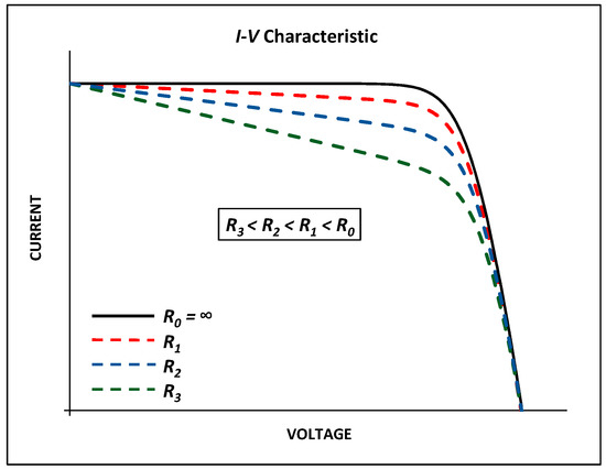 Effects of the shunt resistance on the I-V characteristic.