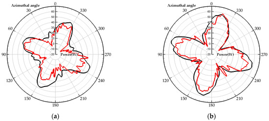 The instantaneous torque of the HVAWT at different TSR values is shown in Figure 7. The black and red lines represent the results of the 2D U-RANS and LES simulation, respectively. It is found that due to the uniform arrangement of the four blades along the azimuthal direction, the torque is varied with a 90° cycle. Furthermore, the peak torque position during one revolution is also rotated in a counterclockwise direction with the increase of TSR. As for the differences between the U-RANS and LES methods, it is obvious to see that the instantaneous torque results of the LES method show much distinct oscillation. This is caused by the fact the U-RANS method applied a time averaged solver, which would smoothen the oscillation along with the time scale.