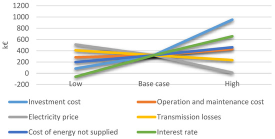 A sensitivity analysis was carried out to illustrate how different values for important input variables could affect results. The applied values are shown in Table 5. For electricity prices, the difference between the low and high value is roughly in accordance with the variation in annual average price in the considered 10-year period. For the transmission losses, the high and low values are set to represent the uncertainty in generation and load due to climate variability, and the uncertainties in the simulation model.