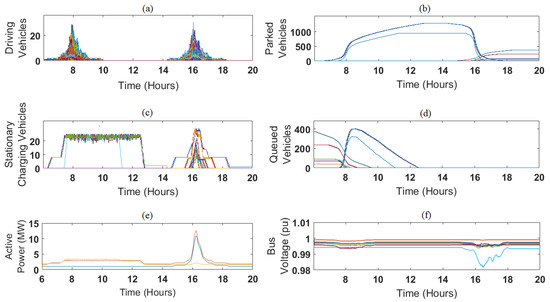 This methodology, to our knowledge, is the first of EV integration studies that presents a dynamic model. It takes into account the dynamic behavior present in any transportation system. This is a significant development from the methodologies within published literature, as generally static analysis is used [74]. The importance of such an assessment methodology can be understood by analogy from the precedent of renewable energy integration. At first, the integration of solar PV and wind energy was viewed from the perspective of small demonstration projects that had little or no effect on holistic power grid performance. As desired penetration rates grew into double-digit percentages, many renewable energy integration (case) studies [78,79,80,81,82] were developed; often with inconsistent methodological formulations. This work seeks to develop this methodological foundation for electrified transportation as it becomes an integral part of the coming sustainable energy transition.