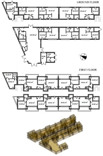The studied building is composed of two units (Figure 1). Considering the building outer shell structure, the same geometrical features are considered for both the three-star hotel and the multi-residential building.