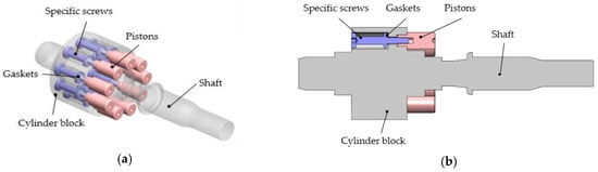 - Ivantysynova, M.; Lasaar, R. An investigation into micro-and macrogeometric design of piston/cylinder assembly of swash plate machines. Int. J. Fluid Power 2004, 5, 23–36. [Google Scholar] [CrossRef]