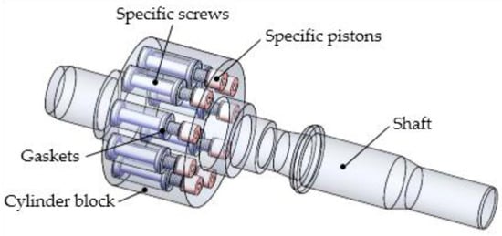 - Jeong, H.S.; Kim, H.E. A novel performance model given by the physical dimensions of hydraulic axial piston motors: Experimental analysis. J. Mech. Sci. Technol. 2007, 21, 630–641. [Google Scholar] [CrossRef]