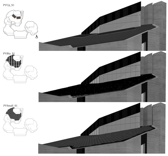 Figure 13 shows the “new” renderings of the designs using PV Sample 1. Figure 14 summarizes the BIPV visual impacts of the three different designs and their S values categorized by saliency models.