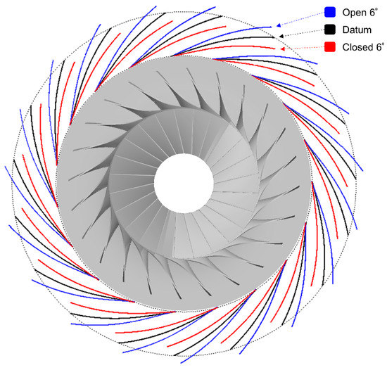 - Huang, Q.; Zheng, X. Potential of variable diffuser vanes for extending the operating range of compressors and for improving the torque performance of turbocharged engines. Proc. Inst. Mech. Eng. Part D J. Automob. Eng. 2017, 231, 555–566. [Google Scholar] [CrossRef]