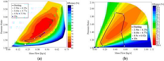 Vehicle starting process simulation results: (a) Compressor; (b) Supercharger.