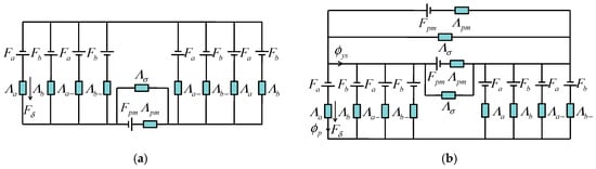 The solving process of the magnetic circuits shown in Figure 9 is derived as follows: