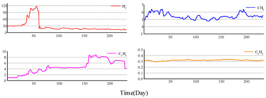 Shown in Figure 8 are the time series data, which include 236 samples from 1 January 2016 to 30 June 2016, of the dissolved gas content of a 220 kV transformer (named T1) where the value of ethylene is zero.
