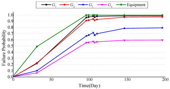 Every type of the failure mode will cause equipment failure, and the series network is established between equipment failure probability and the failure probability of the failure modes [14]. The calculation method of the equipment failure probability is given by Equation (14):