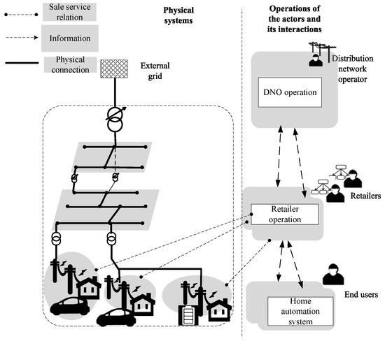 To support the overall operational sequences, Section 3.1 introduces the method for generating the day-ahead schedule of retailers; specifically, the EVs’ and heat pumps’ power profiles are optimized based on their energy requirements and the predicted day-ahead spot price. Besides, in Section 3.1, the DNO’s available capacity is calculated. The overall social welfare maximization problem is presented in Section 3.2. The implementation of the sequences here needs the optimal decision making of each actor, which is illustrated in Section 3.2. In terms of the congestion price, Section 3.3 discusses how to use it in reality.
