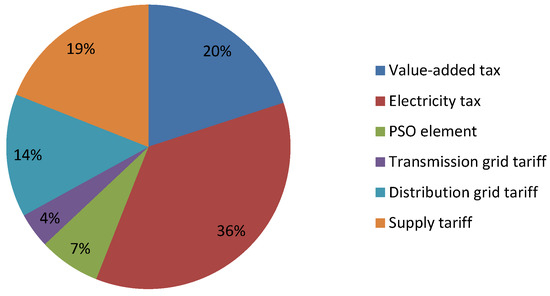 Composition of the residential electricity price, simplified for a consumption of a normal household with 4000 kWh/y, average for 2012 [19]. PSO: public service obligation.
