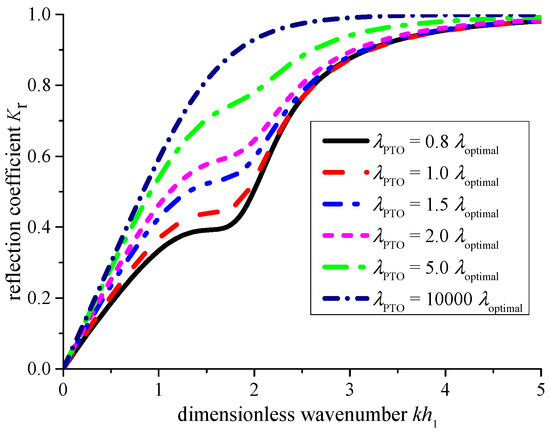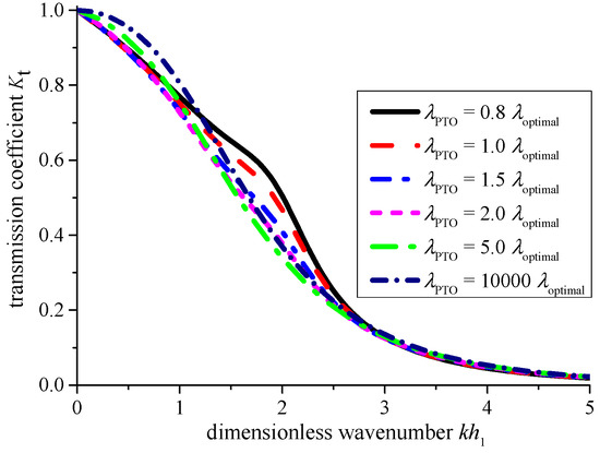 - The breakwater with the PTO damping of λPTO = 1.5–2λoptimal may give a broader frequency bandwidth with Kt < 0.5 and η > 20%. Fortunately, the transmission coefficient corresponding to the case with λPTO = 2λoptimal is slightly superior to that of the fixed breakwater.
