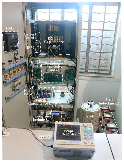 To verify the above theoretical analysis, a prototype of a 10 kW three-phase LCL-type grid-connected converter is built, as shown in
