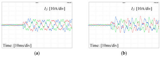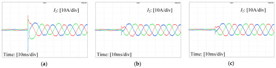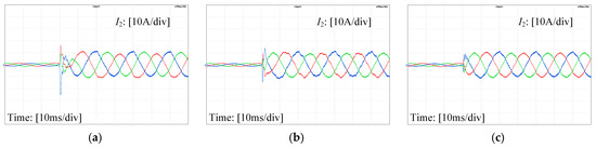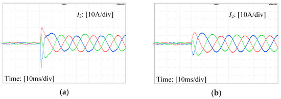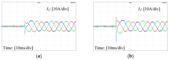 Figure 11a shows that, under weak grid conditions, with the increase of grid inductance, the start-up inrush current is smaller, which is consistent with the theoretical analysis.