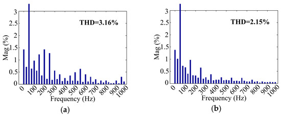 Figure 11a shows that the inrush current when the converter starts in inverter mode is much smaller than that when the converter starts in rectifier mode. With SCVDFF and DFPS-CVFF, the disturbance of grid voltage is restrained, and the grid-connected converter has a better start-up dynamic performance, which is consistent with the theoretical analysis.