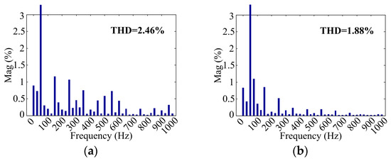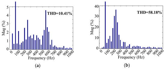 Figure 17. Under weak grid conditions, due to the additional positive feedback loop of grid current, the system does not have a big enough stability margin. Therefore, the grid current has many harmonics and serious distortion. The weaker the grid is, the more serious the grid current distortion will be. Moreover, as shown in