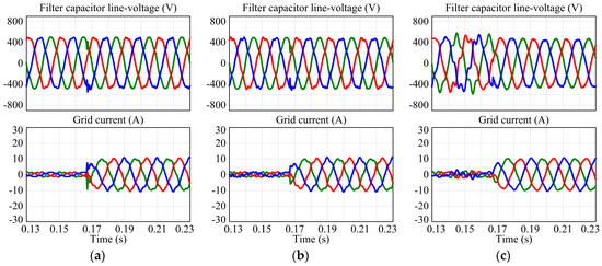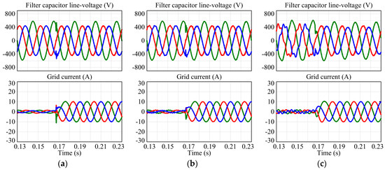Figure 11b,c, after a short adjustment, the grid current converges smoothly to its reference, and the current peak has been effectively suppressed.