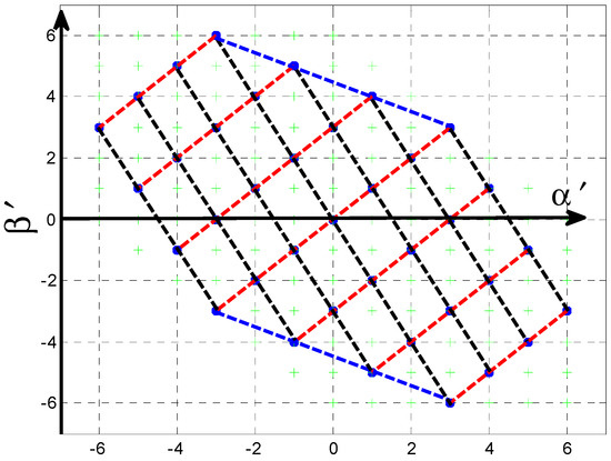 A α′β′ coordinate system is our developed coordinate system [20], and this coordinate system has been successfully applied in a capacitor voltage balancing control for diode-clamped multilevel inverters [21] and a zero-order voltage constraint for cascaded multilevel inverters [20]. In the α′β′ coordinate system, the multilevel inverter voltage vectors have only integer entries, and the absolute coordinate increment between adjacent vectors is equal to 1. The transformation matrix between the α′β′ coordinate system, the traditional αβ coordinate system, and the abc coordinate system are written as: