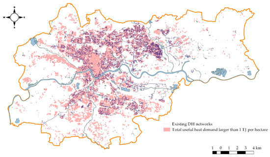 - Finney, K.N.; Sharifi, V.N.; Swithenbank, J.; Nolan, A.; White, S.; Ogden, S. Developments to an existing city-wide district energy network—Part I: Identification of potential expansions using heat mapping. Energy Convers. Manag. 2012, 62, 165–175. [Google Scholar] [CrossRef]