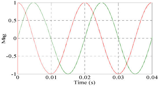 In implementing the MSRF method, the three-phase supply currents , , and are transformed into the two-phase (α-β) current in the stationary frame, with and as described by Equation (3).