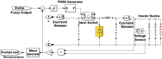 The dump load controller takes any extra power that needs to be consumed as input from the fuzzy logic-based energy management system as shown in the internal configuration of dump load controller in Figure 6. After that, this surplus power is consumed by several heater banks in the dump load block to keep the power flow in the system steady and efficient by generating heat.