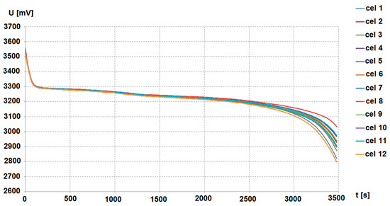 Example of discharge characteristics of the propulsion battery after 1.5 years of use. Discharge current: 2.3 A.